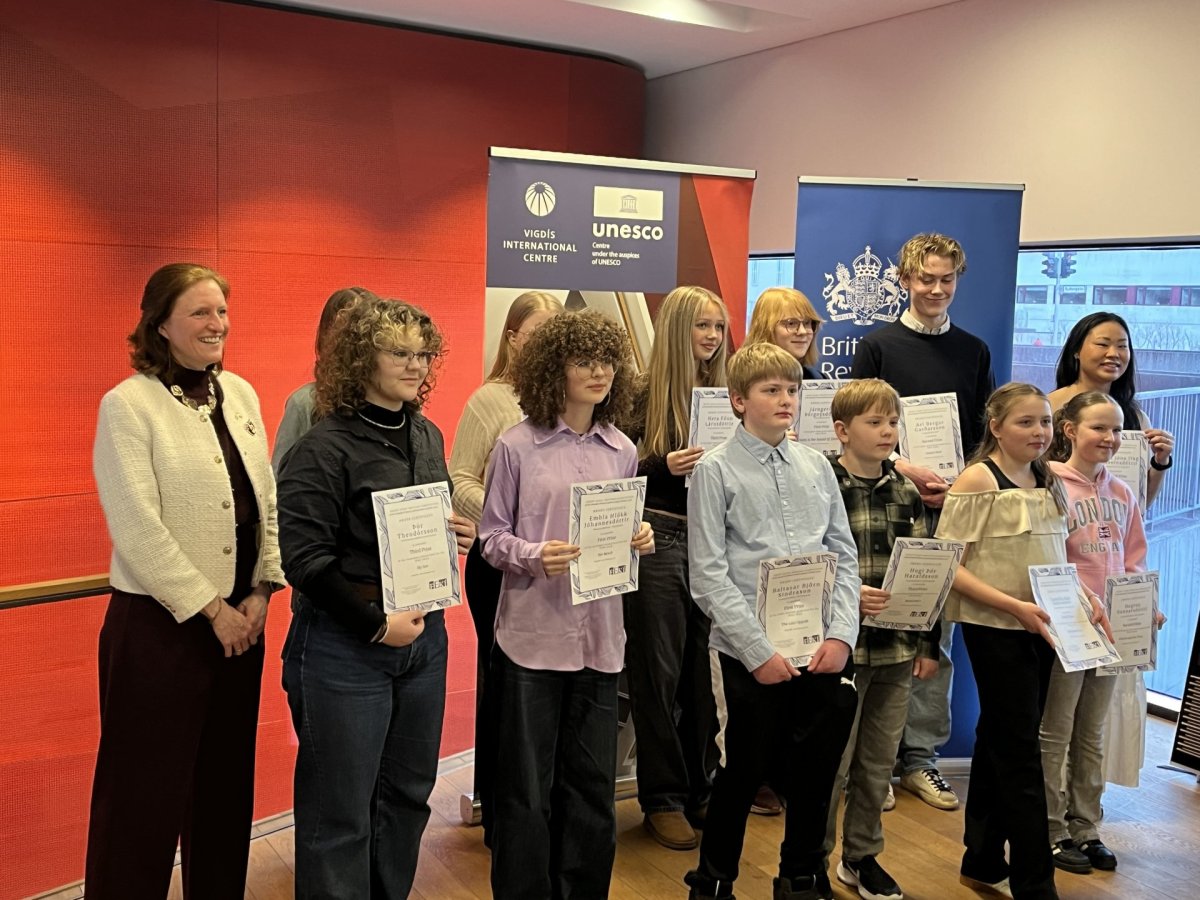 Það var sendiherra Bretlands á Íslandi Dr. Bryony Mathew sem afhenti nemendum